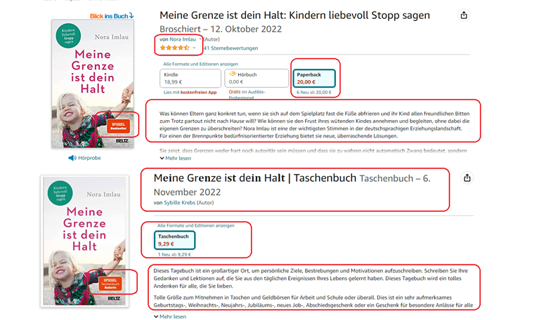 Seit mehreren Wochen nun würden immer wieder gefälschte Produkte des Bestsellers „Meine Grenze ist dein Halt“ von Nora Imlaus auf der Verkaufsplattform Amazon gelistet werden, berichtet die Verlagsgruppe Beltz.