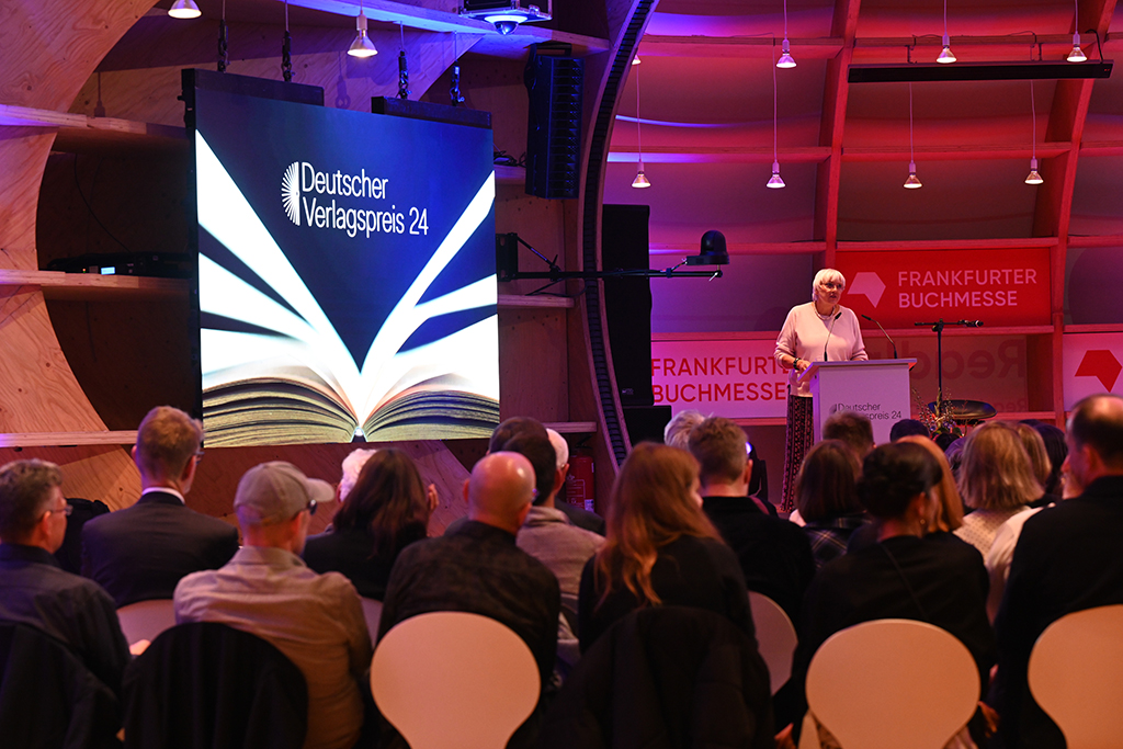Die an diesem Abend Schecks ausreichende Kulturstaatsministerin sah sich – anders als bei der Buchmesse-Eröffnung am Vortag – keiner Kritik auf offener Bühne ausgesetzt. Roth gab auf der Buchmesse-Agora die unbedingte Kämpferin für gebeutelte Buchbranche, und wenn sich die Ministerin der allgemeinen Feierstimmung alsbald entzog, liegt das nur darin begründet, dass sie schon am heutigen Donnerstagmorgen im Haushaltsausschuss des Deutschen Bundestages als Lordsiegelbewahrerin der Indie-Interessen aufzutreten verspricht. Zur Causa der seit gefühlt zehn Jahren angedachten strukturellen Verlagsförderung, deren Prüfung im Koalitionsvertrag der Ampel fixiert war, sagte Roth: „Ich sehe wie Sie den Bedarf für eine strukturelle Verlagsförderung. Es sind die Zwänge des Haushalts und auch die Zwänge einer Schuldenbremse, die uns hier enge Grenzen setzen.“ Bei einem Spitzengespräch mit den Kulturministern der Länder wurde letzte Woche indes vereinbart, „dass es, nicht irgendwann, sondern sehr, sehr schnell, eine Länder-AG geben wird, die die konkreten Möglichkeiten einer strukturellen Verlagsförderung konkret prüfen wird.“ Der Börsenverein immerhin hat konkrete Vorschläge gemacht, auch die Zahl zehn Millionen Euro steht unwidersprochen als Elefant im Raum – nun muss nur noch der politische Wille her. Und eben ein Konzept, das trägt.