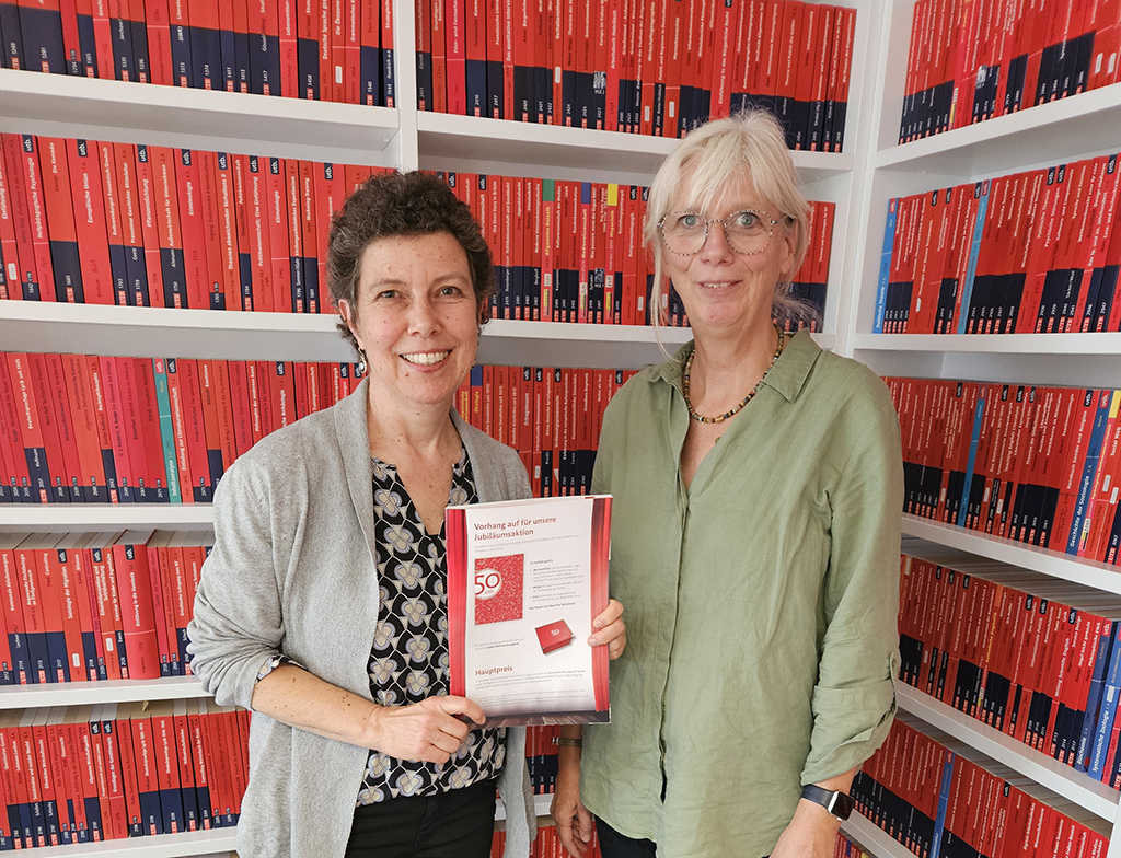 Anlässlich seines 50-jährigen Jubiläums hatte utb vor vier Jahren eine Deko-Aktion für den Buchhandel ausgeschrieben. Gewonnen hatte die Buchhandlung Hugendubel am Campus in Göttingen mit einem "roten" Schaufenster - nun konnten die Gewinnerinnen ihren Hauptpreis endlich einlösen.