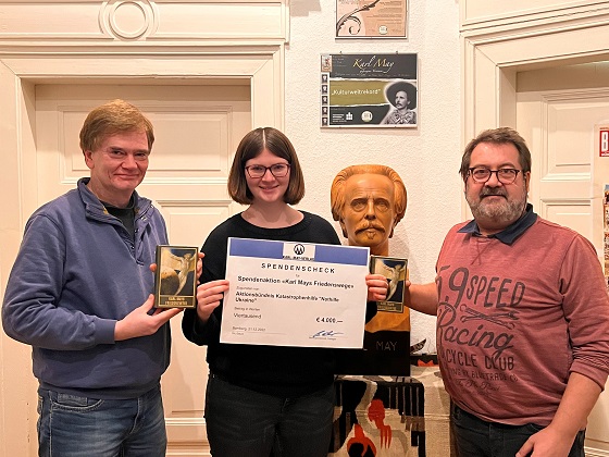 Der Karl-May-Verlag hat den gesamten Netto-Umsatz des Buchs "Karl Mays Friedenswege" aus dem Verkauf von 2022 dem Aktionsbündnis "Nothilfe Ukraine" gespendet.