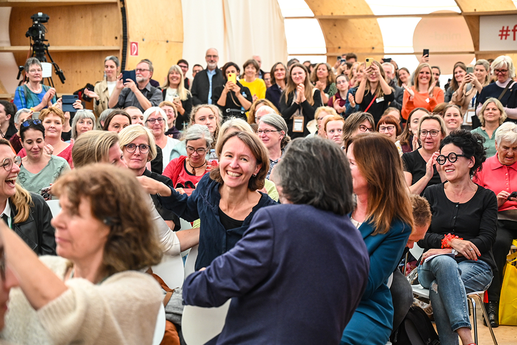 Das Liebste der Liebsten ist aber eindeutig: "Pi mal Daumen" von Alina Bronsky (Kiepenheuer & Witsch). Alina Bronsky nahm den Preis persönlich entgegen - begleitet wurde sie von Programmleiterin Sandra Heinrici und Verlegerin Kerstin Gleba. Zunächst konnte Bronsky kaum glauben, dass sie gewonnen hatte: "Ich hab's nicht kommen sehen ... Es ist für mich eine große Ehre, in dieser Runde von Büchern zu sein, die dem Leben ins Gesicht schauen", meinte Bronsky. "Ich bin ... sprachlos. Die Auszeichnung als Lieblingsbuch der Unabhängigen bedeutet mir als Autorin unglaublich viel", meinte die Schriftstellerin und dankte den Buchhändler:innen, die den Erfolg ihrer Romane ermöglichten. "Ich hab das Gefühl, ich müsste mich noch bei der Deutschen Bahn bedanken, weil mein Zug sieben Minuten früher angekommen ist – aber ich warte noch damit, muss ja noch nach Hause kommen ...", meinte Bronsky verschmitzt. "Meine Botschaft: Kinder, es lohnt sich, sich mit Mathematik zu beschäftigen!"