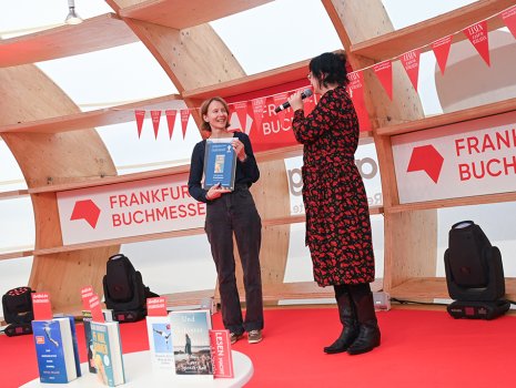Messedonnerstag, 14 Uhr: Der Pavilion ist vollbesetzt, alle möchten hören, welcher Roman es zum "Lieblingsbuch der Unabhängigen" 2024 geschafft hat. "Alle Titel der Shortlist sind Herzensbücher der Unabhängigen", stellt Buchhändlerin Dorothee Junck (Buchhandlung Neusser Straße, Köln) jedoch vor der Verkündung klar.