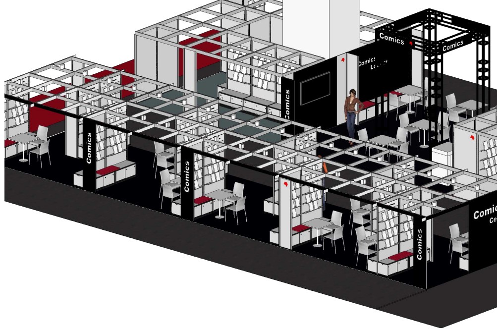 Rund 32 Quadratmeter plus einer Lounge soll das Comics-Centre umfassen, rund herum sollen internationale Comicverlage platziert werden. Vor gut 20 Jahren hatte die Buchmesse bereits Comic-Schwerpunkte in Halle 3.0 gesetzt, mit Angeboten für Fachbesucher:innen und Publikum; vor einigen Jahren zersplitterten die Interessen der Verlage in Bezug auf ein Comiczentrum bei der Messe jedoch, die eigenen Stände wurden ausgebaut. "Das Comics-Centre soll als B2B-Treffpunkt dienen, in dem es auch um Filmrechte, Übersetzungsrechte etc. geht", sagt Birgit Fricke, Key Account-Managerin Vertrieb der Frankfurter Buchmesse. "Wenn man sieht, wie viele Verfilmungen aus Comics derzeit entstehen, wie populär Manga und Animes sind, wird deutlich, wie wichtig das Genre Comic für Buch- und Lizenzhandel ist."