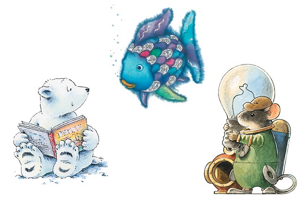 Bestseller-Character im NordSüd Verlag: Hans de Beers "Kleiner Eisbär", Marcus Pfisters "Regenbogenfisch" und Torben Kuhlmanns Maus