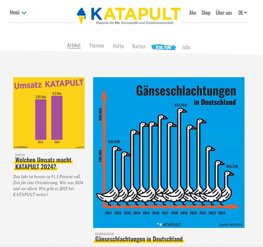 "Das sind etwa 330.000 Euro mehr als 2023. Gleichzeitig haben wir unsere Kosten gesenkt und ein stabiles, kleineres Team gebaut", schreibt Benjamin Fredrich, Herausgeber von "Katapult" und Chefredakteur von "Katapultu". "Katapult MV", das über Mecklenburg-Vorpommern berichtet, sei der einzige Bereich, der nach derzeitigem Stand 2025 leicht ins Minus rutschen werde: Die Lokalredaktion brauche etwa 500 neue Abos, um wieder ausgeglichen wirtschaften zu können. "Wir bleiben bei unserer Prämisse: Auch wenn wir insgesamt im Plus sind, jedes Teilunternehmen muss mindestens ausgeglichen sein", so Fredrich auf der Website.