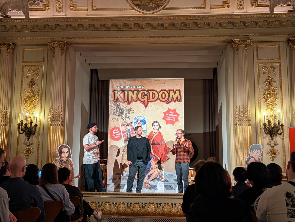 Diese Lizenz erworben zu haben, komme für den Verlag einen Ritterschlag gleich. Für das Vertrauen des japanischen Verlages Shueisha ist das Team sehr dankbar. Sowohl in Manga-Foren, auf Social Media als auch in Anfragen direkt an den Verlag hätten sich Leser:innen immer wieder erkundigt, ob und wann "Kingdom" auf Deutsch erscheine, die Nachfrage sei also da.