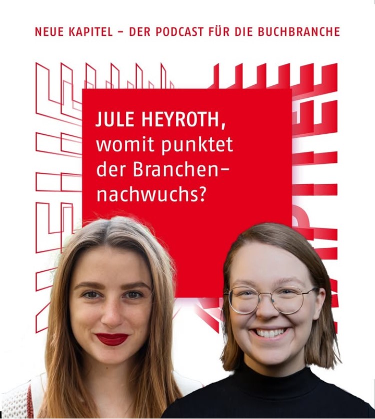 Für die dritte Folge des Börsenverein-Podcasts "Neue Kapitel" hat Carina Fricke, Marketingmanagerin bei der Verlagsgruppe Oetinger und ehrenamtliche Sprecherin des Zukunftsparlaments im Börsenverein, mit Jule Heyroth, Volontärin im Kinder- und Jugendbuch bei Fischer Sauerländer und Mitglied der Taskforce KI der Zukunfts-AG im Börsenverein über den Branchennachwuchs gesprochen.