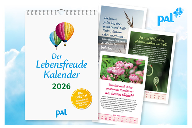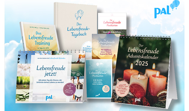 Wir begleiten Menschen auf diesem Weg auch mit den weiteren Produkten der Lebensfreude-Welt von PAL, die die Themen unserer Lebensfreude-Kalender aufnehmen, vertiefen und ergänzen: allen voran unser Bestseller Der Lebensfreude-Adventskalender 2025, dazu die Lebensfreude-Postkartensets, Das Lebensfreude-Tagebuch, Das Lebensfreude-Coaching-Kartenset, Das Lebensfreude-Training u.v.m.