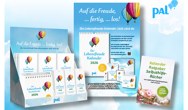 Bestellen Sie jetzt die neuen Lebensfreude-Kalenderausgaben 2026, Ihren Umsatzgarant fürs Herbstgeschäft! NEU: Erstmals erscheinen alle Ausgaben des Lebensfreude-Kalenders direkt bei PAL und werden ausgeliefert von Brockhaus/Commission. Mit der Unterstützung des Teams vom Vertriebsbüro Alexander Herrmann (Aurora Vertriebskooperation) bekommen Sie so alles aus einer Hand: