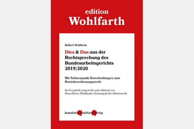 Der Verlag setzt mit Band 4 die Reihe „Dies und Das aus der Rechtsprechung des Bundesarbeitsgerichts“ fort. Band 4 enthält 93 ausgewählte Entscheidungen des Bundesarbeitsgerichts, die im Zeitraum 2019 bis Dezember 2020 veröffentlicht wurden. Vorgestellt und besprochen werden 49 Entscheidungen aus dem kollektiven Arbeitsrecht und 44 Entscheidungen aus dem Individualarbeitsrecht. Zusammen mit den Bänden 1 bis 3 haben die Leser im Berichtszeitraum 2016 bis 2020 Zugriff auf 255 Entscheidungen des Bundesarbeitsgerichts. Ergänzt wird die arbeitsrechtliche Reihe der Edition Wohlfarth mit dem Lese- und Handbuch „Die Beteiligung des Betriebsrats bei personellen Einzelmaßnahmen“, dem Ratgeber „Das Betriebsratsmandat“ und für Rechtsanwälte „Der Umgang mit der Rechtsschutzversicherung im arbeitsrechtlichen Mandat“ (nur als E-Book).