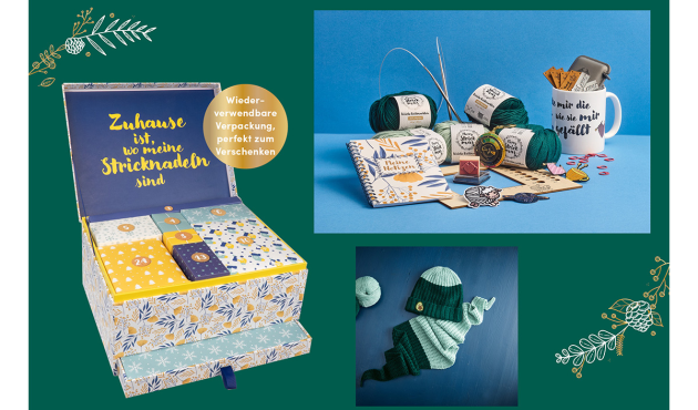 Das Thema Handarbeiten ist in den letzten Jahren immer beliebter geworden und erreicht mehr und mehr Menschen. Gleichzeitig gibt es viele treue Näh-, Häkel- und Strick-Fans, für die Handarbeiten schon längst ein fester Bestandteil des Lebens sind. Die Strick-Community kann dieser Leidenschaft nun auch im Advent mit dem neuen, hochwertigen Adventskalender Merry Strickmas gerecht werden. In den 24 Tagen bis Weihnachten können hier tolle, neue Lieblingsstücke gestrickt werden. Gerade in der dunklen Jahreszeit zieht man sich gerne zurück und strickt auf dem gemütlichen Sofa – das jeden Tag tun zu müssen, um beim Adventskalender hinterherzukommen, kann aber schnell vielmehr zum Stress- als zum Erholungsfaktor werden. Deshalb wird in diesem Adventskalender in Etappen und nach dem eigenen Tempo gestrickt, ohne daraus eine tägliche Pflicht zu machen. Da Strickerinnen und Stricker erfahrungsgemäß ihre Leidenschaft auch über das regelmäßige Stricken hinaus in den Alltag holen wollen und viel Wert auf schöne und passende Accessoires legen, wird diesem Wunsch auch genüge getan: Im Kalender finden sich passende Überraschungen, die das Strickherz höherschlagen lassen, von Tasse und Notizbuch über Stempel und Sticker bis hin zu exklusiven Pins und Patches. Auch besondere Accessoires, die man sich selbst einfach so vielleicht nicht leisten würde, sind enthalten - z.B. ein Farbenfinder, mit dem man für das nächste Strickstück ganz leicht passende Farben sowie harmonische Kontraste definieren kann.