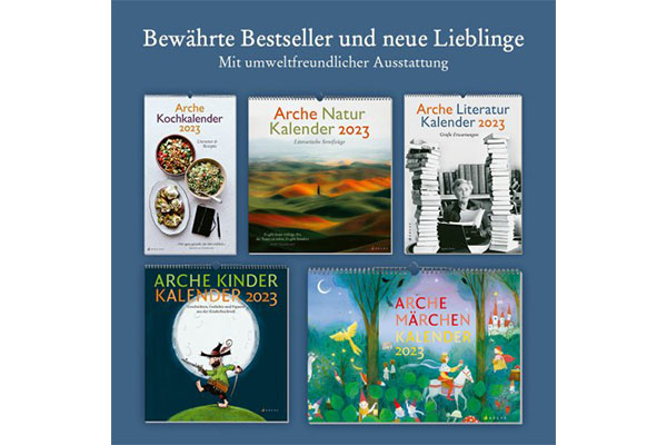 Ein passender Kalender für jedes Zimmer und für jeden Geschmack: Die »Arche Kalender« richten sich an Erwachsene, Kinder, Natur- und Kochliebhaber:innen und natürlich an alle, die Poesie und gute Geschichten zu schätzen wissen. Denn gute Geschichten sind von unermesslichem Wert für alle, ob klein oder groß, jung oder alt. Was sonst vermittelt neben Wissen auch Mitgefühl und erfüllt vielseitige Bedürfnisse wie jene nach Bereicherung, Abenteuer, Trost und Freude? Die Geschichten, Fotos und Illustrationen der »Arche Kalender« zeigen das ganz eindrücklich – schon deshalb sind sie unverzichtbare Begleiter und immer das richtige Geschenk. Dabei verzichten sie komplett auf Plastik und werden umweltfreundlich produziert.